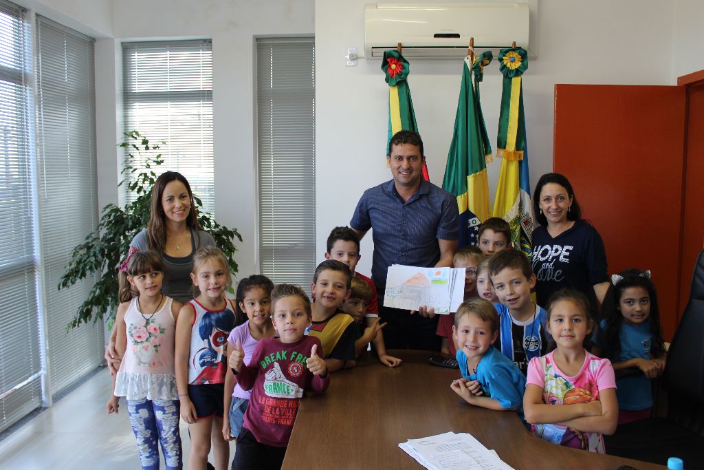 Os alunos da turma do 1º ano da escola municipal Antônio Parreiras visitaram na quinta feira dia 19 de abril a prefeitura municipal. Coordenados pela diretora Silvia Dalla Nora e pela professora Rosicler Santos, os estudantes foram em todos os setores do Centro Administrativo e puderam interagir com os servidores, que explicaram quais são as suas atribuições e funções junto a Administração Municipal. Após visitar as salas, os pequenos alunos na faixa etária de 6 a 7 anos foram até o gabinete para interagir com o prefeito Gilso Paz. Na ocasião Gilso revelou quais são as principais missões para governar o município, destacando que o ponto mais importante é o trabalho em equipe e a união de todos.