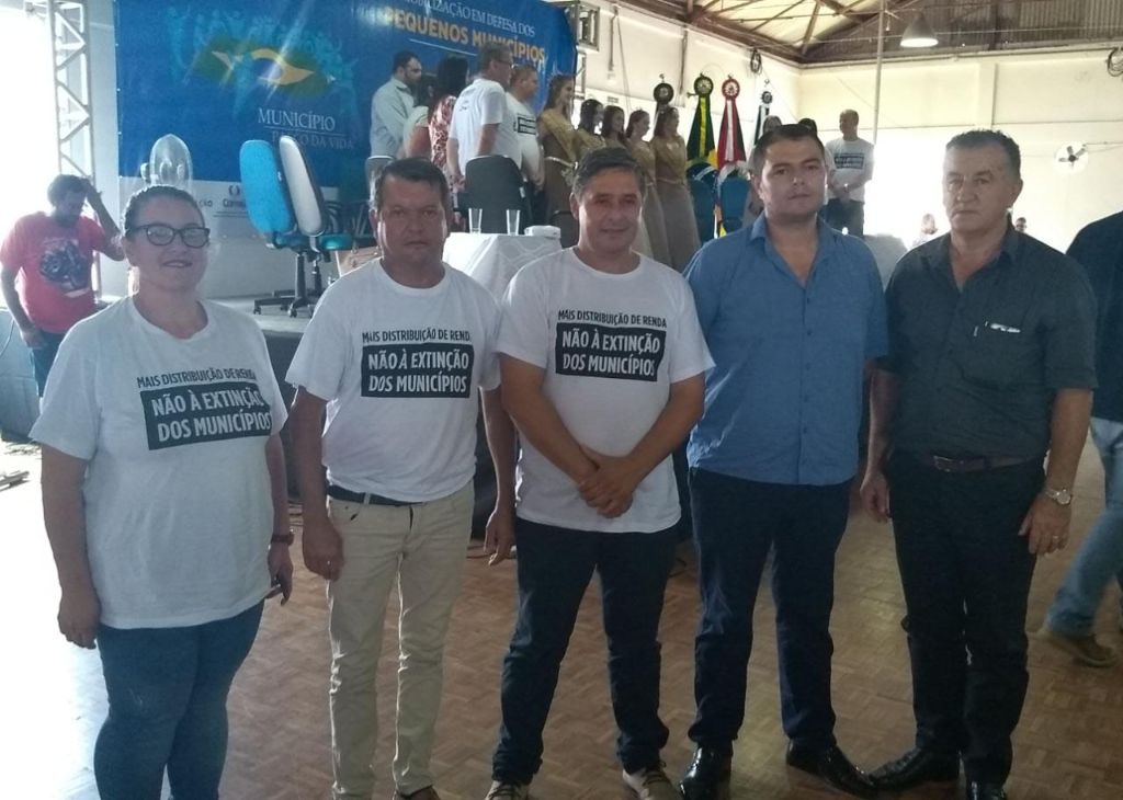 Representantes de Tio Hugo participaram na manhã desta sexta-feira (07) da Mobilização em Defesa dos Pequenos Municípios, que foi realizada em Saldanha Marinho. Estiveram presentes o prefeito em exercício Geder Follmer, os secretários municipais, Delcio Wiedthauper e Paulo Cesar Pereira, os vereadores tio-huguenses Silvana Cardoso Sipp e Vanderlei Kerber, entre outros representantes dos poderes Executivo e Legislativo municipal. Autoridades do âmbito regional, estadual e nacional também participaram da mobilização, que teve como objetivo debater a PEC 188/2019, que determina a extinção de municípios com menos de 5 mil habitantes.