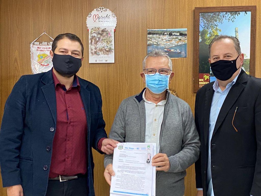O vice-prefeito de Tio Hugo Geder Follmer participou de uma reunião em Porto Alegre com Luiz Carlos Busato, Secretário Estadual de Articulação e Apoio aos Municípios e Orvalino Kuhn, Diretor de Assuntos Municipais do Estado . Na ocasião Geder encaminhou uma solicitação de recursos para investimento em recapeamento asfáltico de vias do interior. De acordo com o vice-prefeito, o Estado do Rio Grande do Sul lançou recentemente um programa específico que disponibilizará recursos para asfaltamento de estradas vicinais, com o intuito de garantir a melhoria no escoamento da produção agrícola e pecuária.