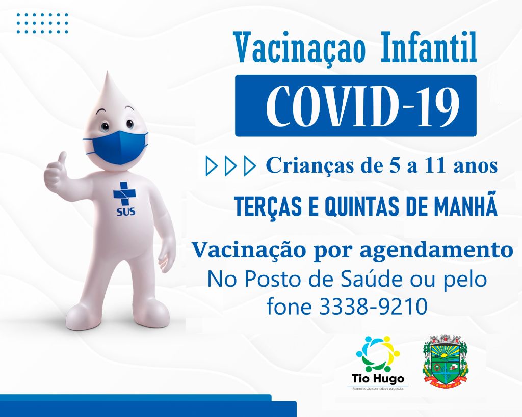 A secretaria de Saúde de Tio Hugo comunica que todas as crianças com idade entre 5 e 11 anos poderão receber a imunização contra a Covid-19.