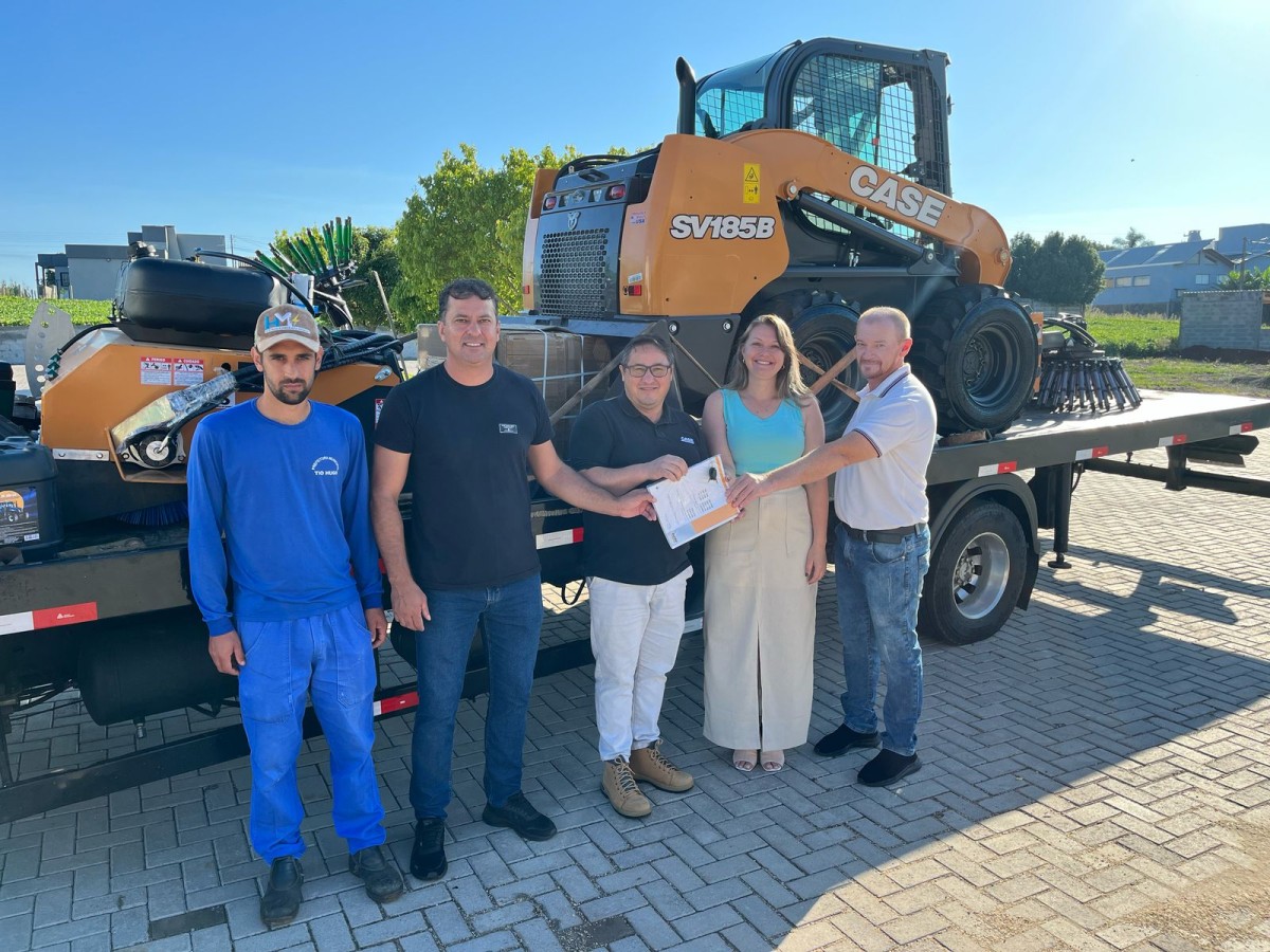 A prefeita explica que a máquina atuará na manutenção e limpeza de ruas e passeios, bem como demais serviços de infraestrutura. Além disso, um ponto muito importante, é a utilização deste equipamento no apoio aos produtores de frango, para manutenção dos aviários.