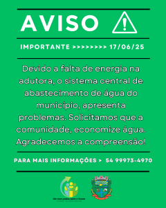 Atenção: Falta de energia elétrica na adutora. Economize água