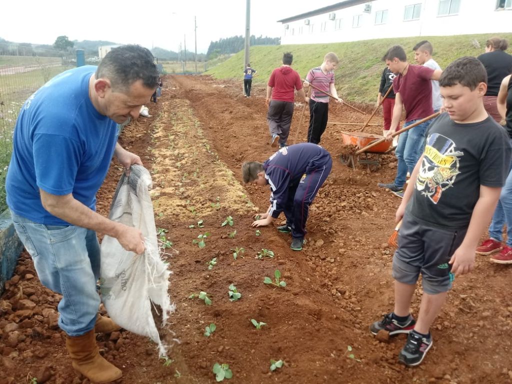 Estudantes auxiliam na implantação de horta na escola Antonio Parreiras de Tio Hugo