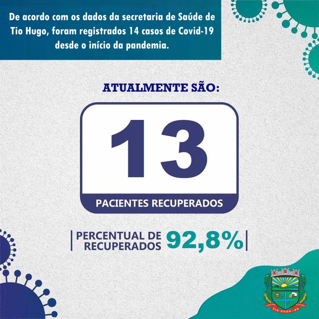 Taxa de recuperação de pacientes com covid-19 em Tio Hugo chega a 92,8%